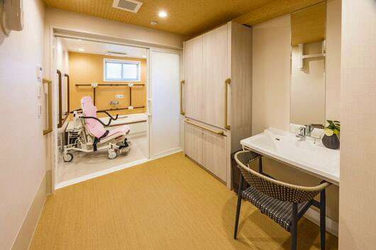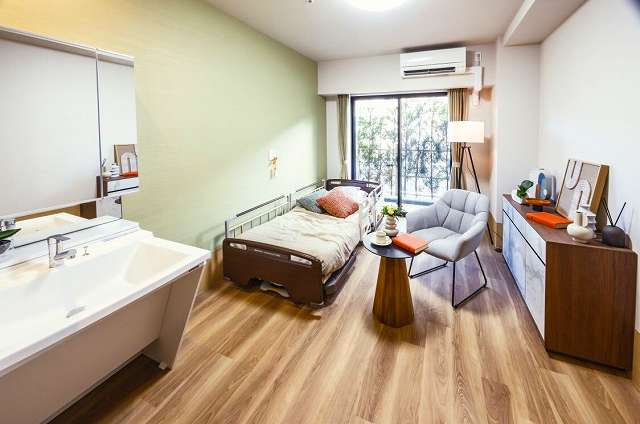| 居室設備 | トイレ(温水洗浄機能付)、洗面(温水機能付)、介護用ベッド、眠りSCAN、ナースコール、エアコン、カーテン、照明、クローゼット、スプリンクラー、TV端子、電話端子 |