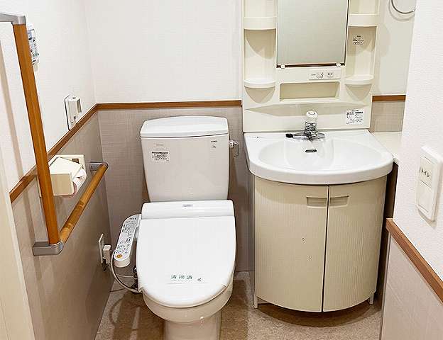 | 居室設備 | 緊急通報装置、自動火災装置、スプリンクラー、放送設備、暖房洗浄付きトイレ、洗面、洗濯機置場、浴室、車いす対応IHクッキングヒーター付きミニキッチン、エアコン、照明器具 |