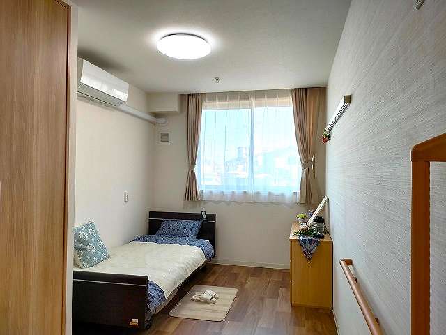 | 居室設備 | 介護ベッド(低床式3モーター)、収納、チェスト、防炎カーテン、エアコン、照明、スタッフコール |