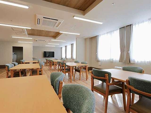 | 共有設備 | ● 浴室(一般浴槽・リフト浴槽)● 温水洗浄便座付トイレ ● 冷暖房 ● Wi-Fi ● 相談室 ● 洗濯乾燥機 ● 食堂兼談話コーナー及び機能訓練コーナー ● エントランス ● EV ● スプリンクラー |