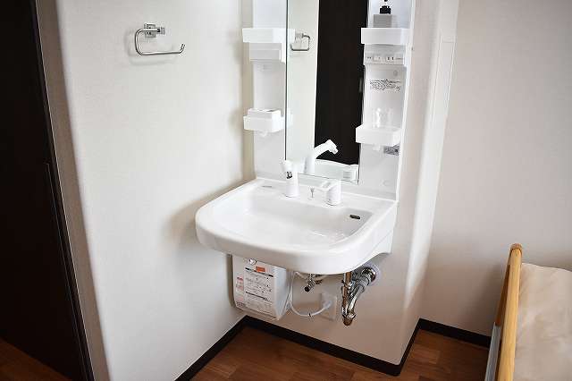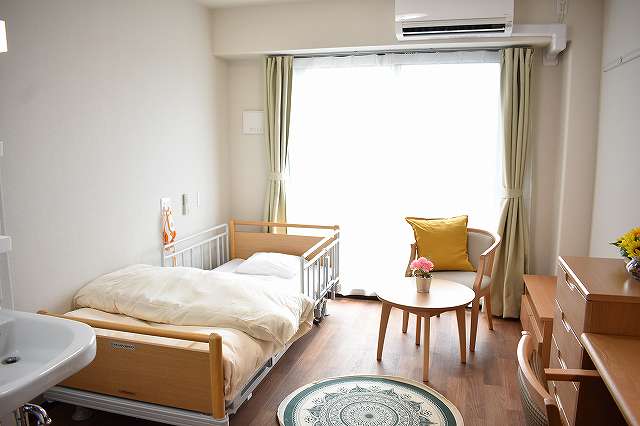 | 居室設備 | スプリンクラー、防災カーテン、オンコール、介護専用電動ベッド、車いす対応洗面台、温水洗浄トイレ、エアコン、収納 |