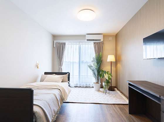 | 居室設備 | エアコン、洗面台、温水洗浄機能付きトイレ、ケアコール、スプリンクラー、収納、介護ベット |