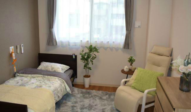 | 居室設備 | ALSOKセキュリティ, 緊急通報装置, テレビ回線, エアコン, クローゼット, 防災設備, 空調換気設備, 照明器具, 電動介護ベッド, カーテン, 寝具, 洗浄機能付トイレ(車いす対応・緊急コール付), 車椅子対応洗面化粧台 |