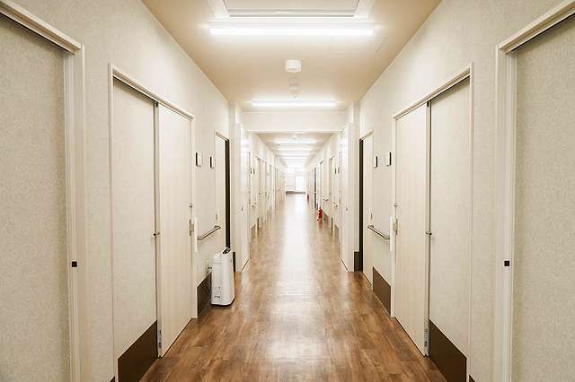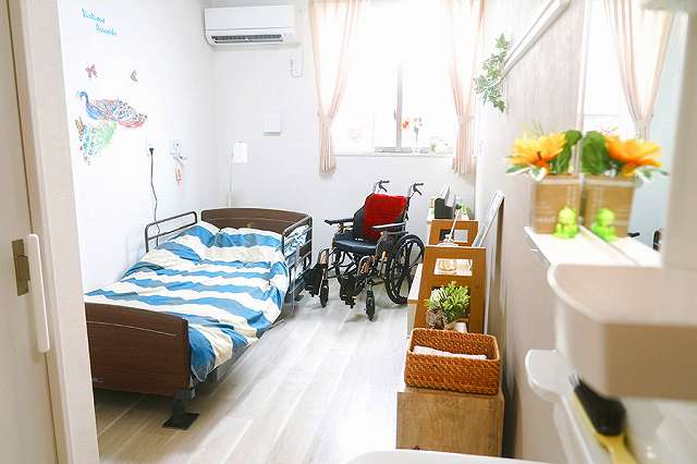 | 居室設備 | タンス、テレビ、電動ベッド、洗面台、トイレ、防火カーテン、照明器具、エアコン、ナースコール(居室・トイレに1ヶ所) |