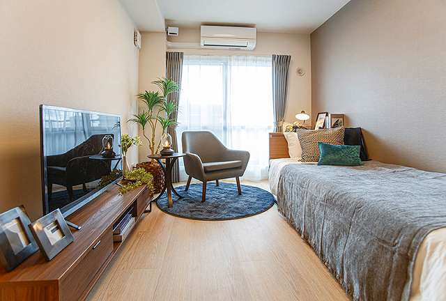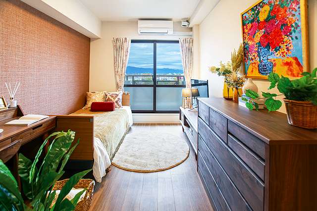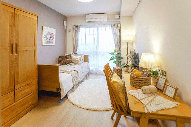 | 居室設備 | 引き戸式ドア(玄関)、開き戸式ドア(玄関)、靴箱、クローセット、車椅子対応洗面化粧台、鏡、引き戸式ドア(居室内)、車椅子対応トイレ(温水洗浄機能付き)、避難設備、物干しバルコニー、ナースコール、エアコン、照明器具、地上波TV配線、Wi-Fi |