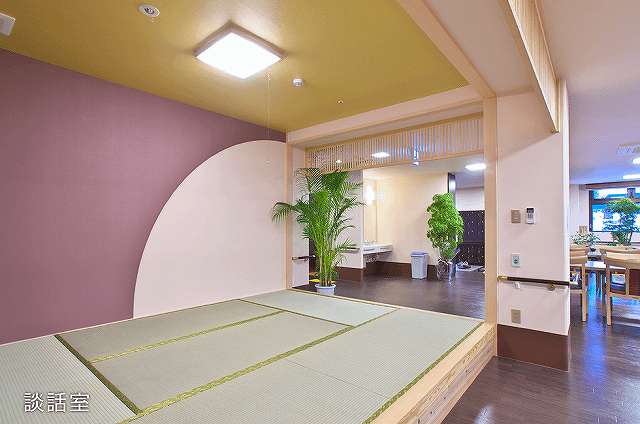 和モダンなたたずまいに、旅館を彷彿とさせる館内。入居者さまにだんらんしていただけるスペースで日中穏やかな時間をお過ごしください。