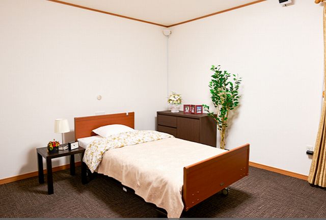 | 居室設備 | エアコン、照明、カーテン、ナースコール、電動介護ベッド、洗面化粧台、車椅子対応トイレ、クローゼット、テレビ配線、見守りシステム等 |