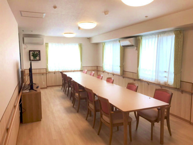 | 居室設備 | 緊急通報装置, テレビ回線, エアコン, クローゼット, 防災設備, 空調換気設備, 照明器具, 電動介護ベッド, カーテン, 寝具, 車椅子対応洗面化粧台, チェスト |